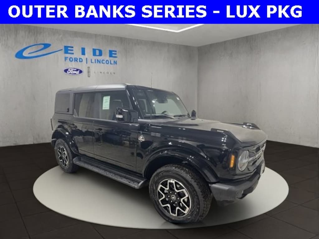 2025 Ford Bronco 4D Sport Utility Outer Banks 2.7L EcoBoost V6 4WD ***Trailer Tow Package/Trailer Hitch, ***Heated Front Seats, ***Rear View Camera/Backup Camera, ***Navigation/Nav/GPS, ***Keyless Entry, ***Apple Carplay/Android Auto, ***Adaptive Cruise Control, ***Remote Start, ***Bluetooth Handsfree Phone, ***Blind Spot Monitoring System, ***B & O Play Premium Audio, ***Satellite Radio, ***360 Camera, ***Reverse Sensing System, ***Lane Keep Assist, ***Lane Departure Warning, Smoked Truffle w/Black Onyx w/Heated Leather-Trimmed/Vinyl Bucket Seats. Shadow Black