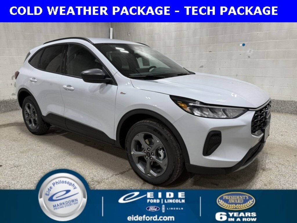 2025 Ford Escape 4D Sport Utility ST-Line 1.5L EcoBoost AWD ***Heated Front Seats***Rear View Camera/Backup Camera***Navigation/Nav/GPS***Apple Carplay/Android Auto***Adaptive Cruise Control***Remote Start***Bluetooth Handsfree Phone***Blind Spot Monitoring System***Satellite Radio***Heated Steering Wheel***Power Liftgate***Reverse Sensing System***Space Silver Metallic Exterior***Ebony w/Heated Vinyl/Cloth Front Sport Contour Bucket Seats Interior