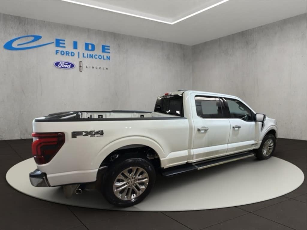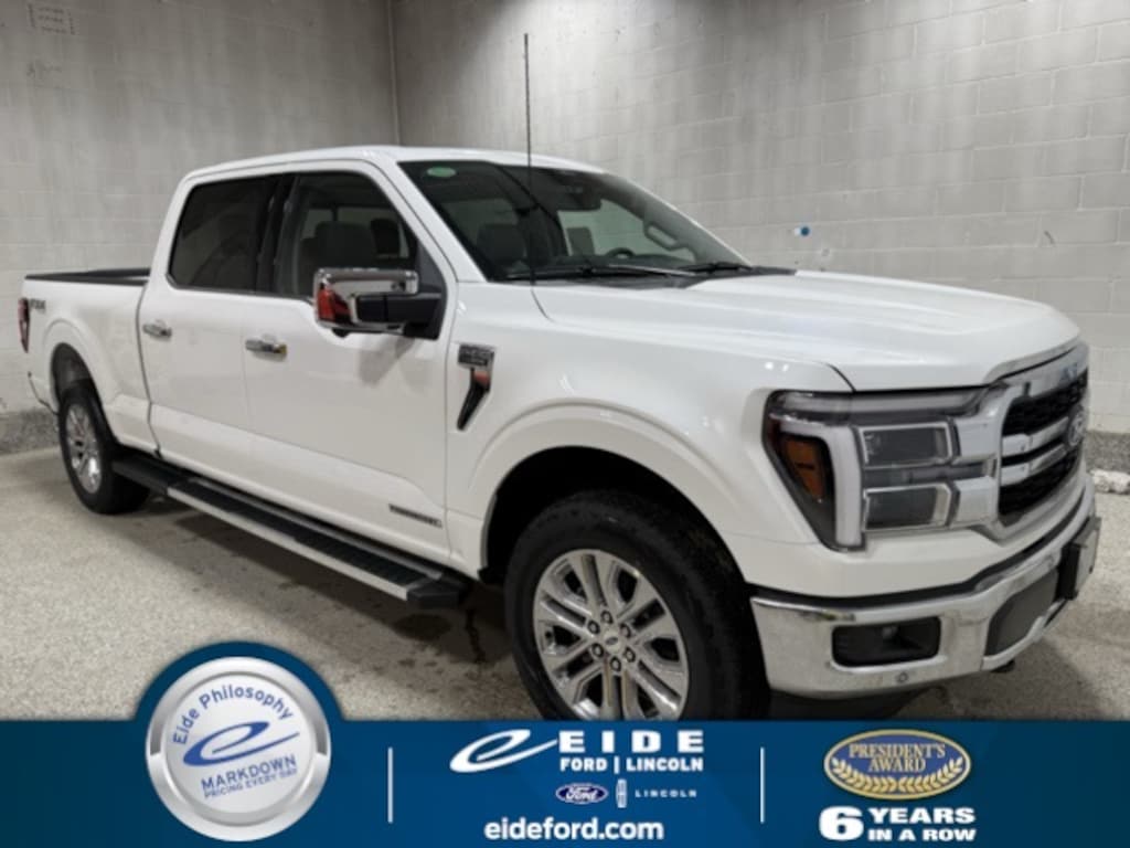 2025 Ford F-150 4D SuperCrew Lariat Chrome 3.5L PowerBoost Full-Hybrid V6 4WD ***Trailer Tow Package/Trailer Hitch, ***Heated/Cooled Front Seats, ***Rear View Camera/Backup Camera, ***Navigation/Nav/GPS, ***Keyless Entry, ***Apple Carplay/Android Auto, ***Adaptive Cruise Control, ***Blue Cruise, ***Remote Start, ***Bluetooth Handsfree Phone, ***Blind Spot Monitoring System, ***Satellite Radio, ***Heated Steering Wheel, ***360 Camera, ***Reverse Sensing System, ***Lane Keep Assist, ***Lane Departure Warning, ***LED Box Lights, *** FX4 Off Road Package, Star White Metallic Tri-Coat, Black/Medium Dark Slate w/ActiveX Seating Material Bucket Seats. Star White Metallic Tri-Coat