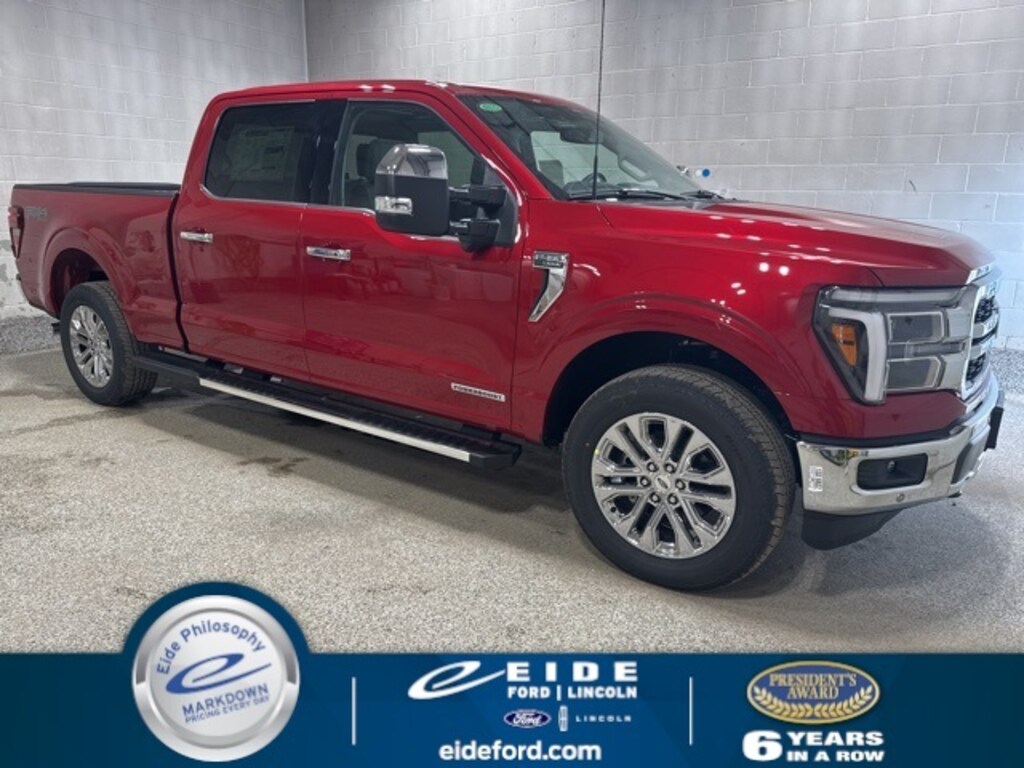 2025 Ford F-150 4D SuperCrew Lariat 3.5L PowerBoost Full-Hybrid V6 4WD ***Dual-Pane Panoramic Vista Roof***Trailer Tow Package/Trailer Hitch***Heated/Cooled Front Seats***Rear View Camera/Backup Camera***Navigation/Nav/GPS***Keyless Entry***Apple Carplay/Android Auto***Adaptive Cruise Control***Blue Cruise***Remote Start***Bluetooth Handsfree Phone***Blind Spot Monitoring System***Satellite Radio***Heated Steering Wheel***360 Camera***Reverse Sensing System***Lane Keep Assist***Lane Departure Warning***LED Box Lights*** FX4 Off Road Package***Rapid Red Metallic Tinted Clearcoat Exterior***Black/Medium Dark Slate w/ActiveX Seating Material Bucket Seats Interior